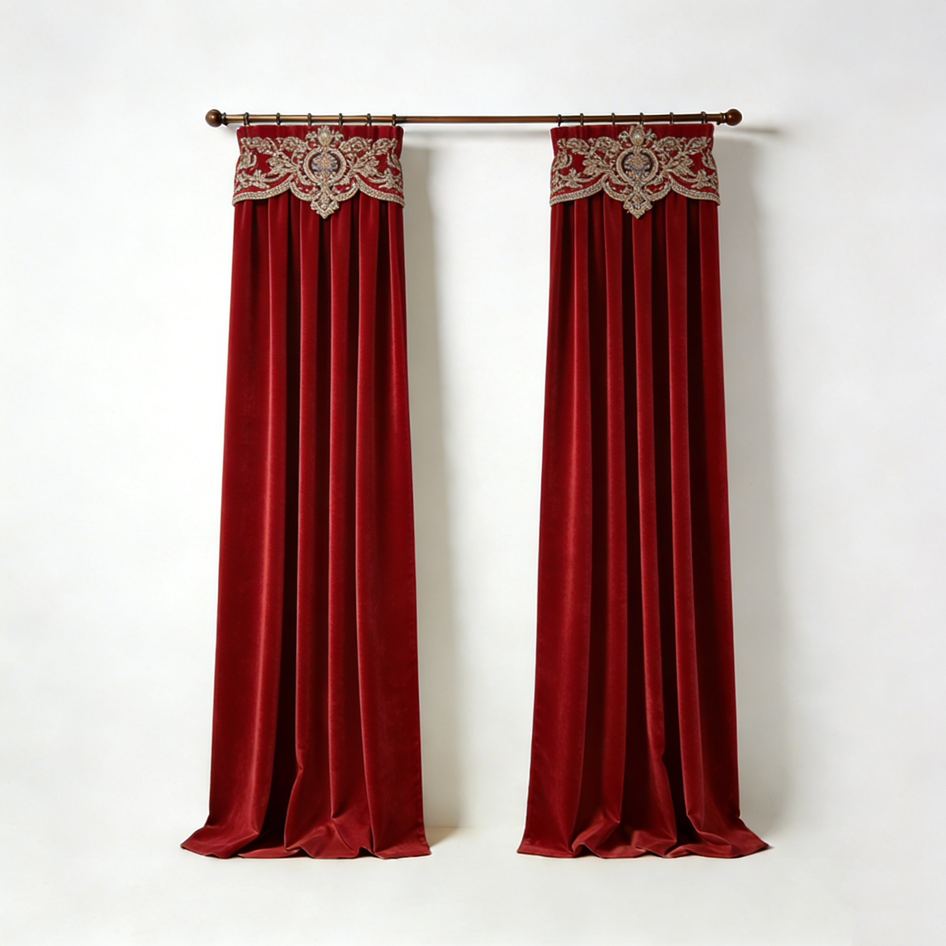 Red Velvet Embroidered Curtains