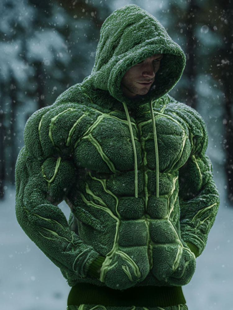 Christmas Muscle Line Art Flannel Vintage Hooded Sweatshirt
