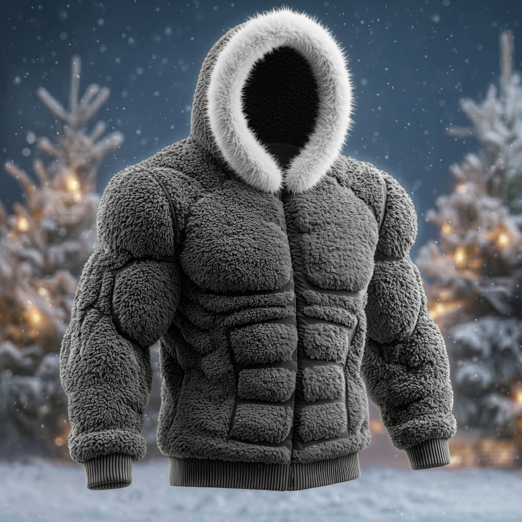 Men's Christmas Line Art Fur Collar Hoodie