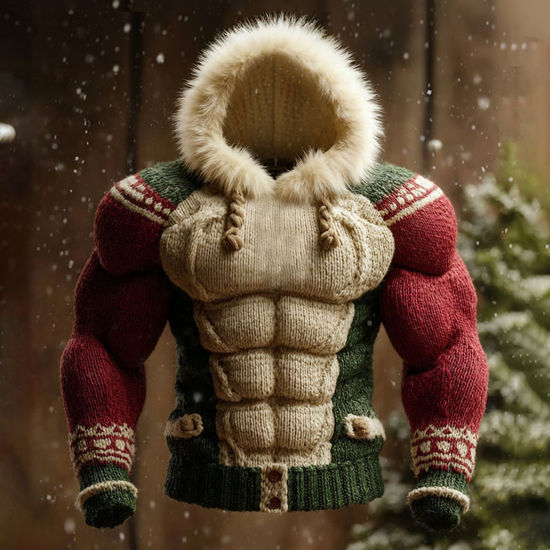 Men's Vintage Christmas Art Jacquard Art Cozy Hoodie
