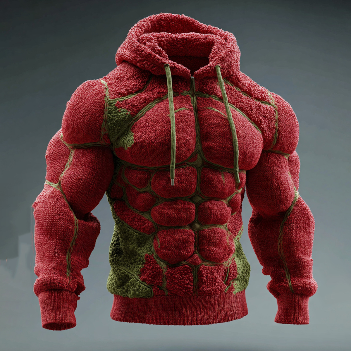 Men's Vintage Line Art Knitted Warm Hooded Sweater